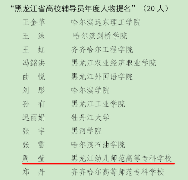 喜报!我校辅导员荣获黑龙江省“辅导员年度人物提名”荣誉称号